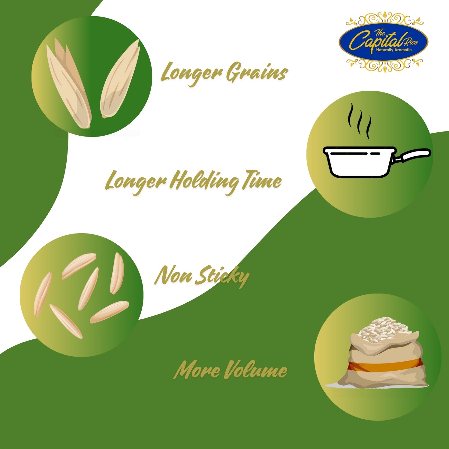 AGED 1121 Basmati Rice has the world’s longest grain, before as well as after cooking and gives 30% more volume than any other Basmati variety. 1121 Basmati Rice grade is known worldwide for its long length, excellent cooking qualities, unique aroma, special sweet taste and high nutritional value. Capital Classic has been aged up to 2 years to bring you the authentic basmati experience.
