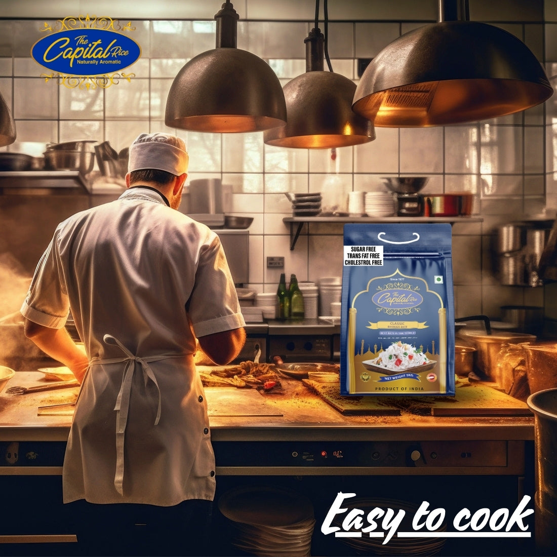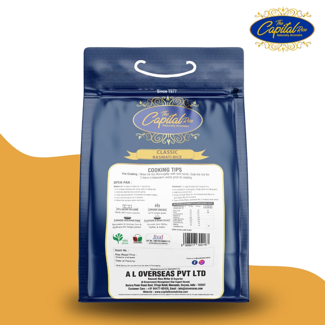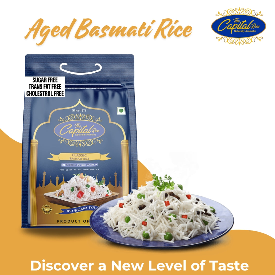 Elevate Your Culinary Creations With Our Premium Quality Aged Basmati Rice. This Long-grain Rice Has Been Carefully Aged to Enhance Its Flavour and Fragrance, Making It the Perfect Ingredient for Discerning Cooks. Whether You’re Making a Classic Dish or Trying Something New, Aged Basmati Rice Will Bring a Touch of Sophistication to Your Meals. 1121 Basmati Rice is Known Worldwide for Its Long Length, Excellent Cooking Qualities, Unique Aroma, Special Sweet Taste and High Nutritional Value. Capital Classic Has Been Aged for Upto 2 Years to Bring You the Authentic Basmati Experience.