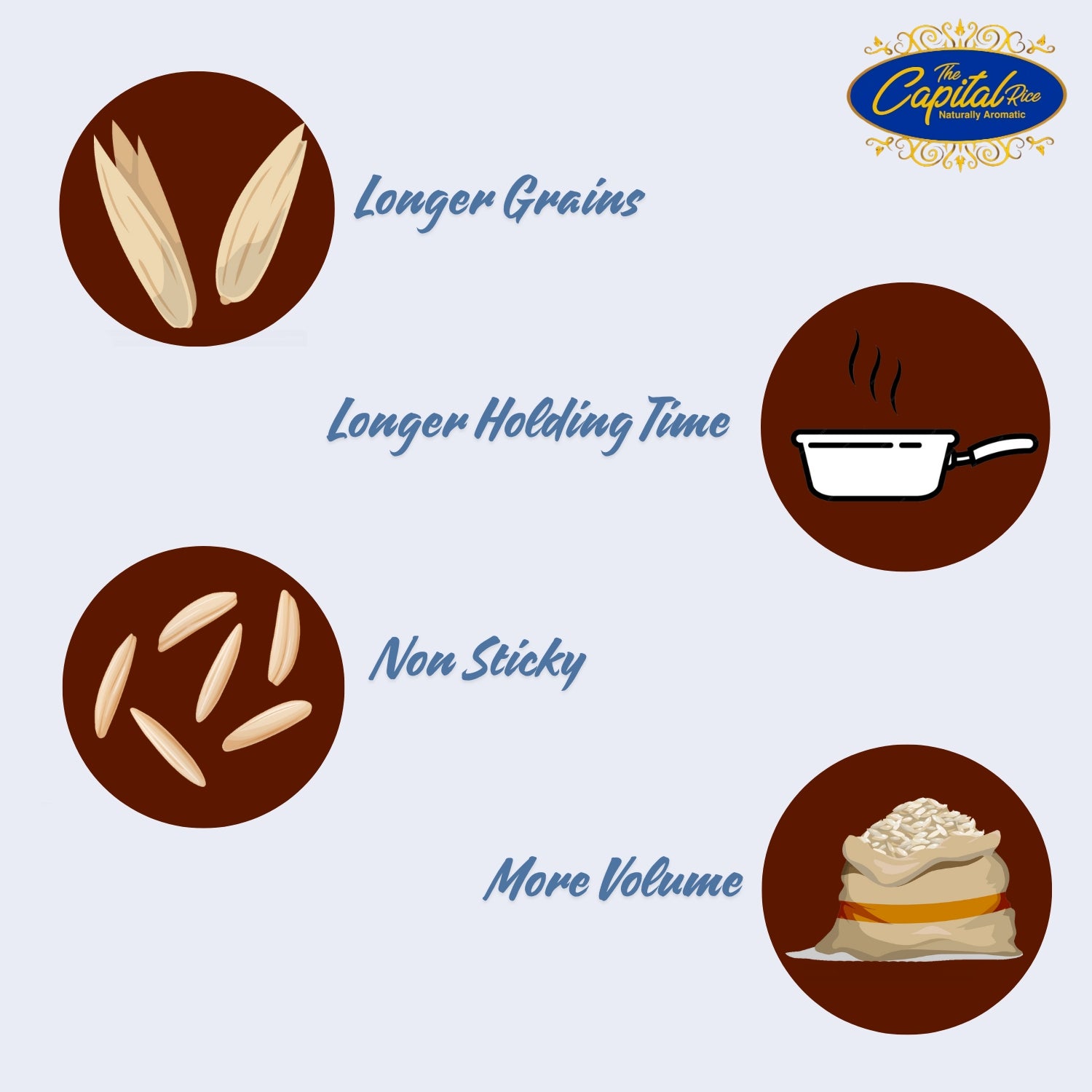 Elevate Your Culinary Creations With Our Premium Quality Aged Basmati Rice. This Long-grain Rice Has Been Carefully Aged to Enhance Its Flavour and Fragrance, Making It the Perfect Ingredient for Discerning Cooks. Whether You’re Making a Classic Dish or Trying Something New, Aged Basmati Rice Will Bring a Touch of Sophistication to Your Meals. 1121 Basmati Rice is Known Worldwide for Its Long Length, Excellent Cooking Qualities, Unique Aroma, Special Sweet Taste and High Nutritional Value. Capital Classic Has Been Aged for Upto 2 Years to Bring You the Authentic Basmati Experience.