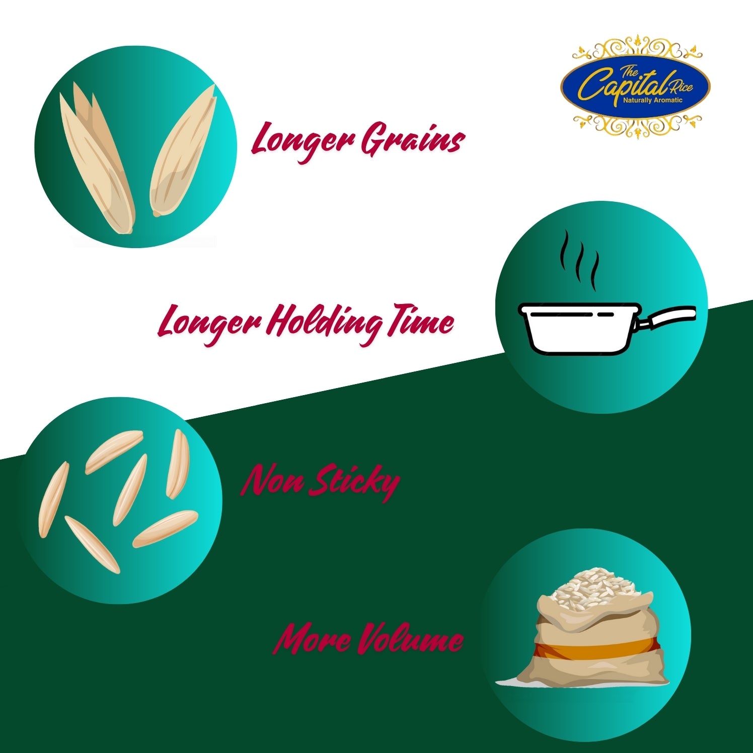 Elevate Your Culinary Creations With Our Premium Quality Aged Basmati Rice. This Long-grain Rice Has Been Carefully Aged to Enhance Its Flavour and Fragrance, Making It the Perfect Ingredient for Discerning Cooks. Whether You’re Making a Classic Dish or Trying Something New, Aged Basmati Rice Will Bring a Touch of Sophistication to Your Meals. 1121 Basmati Rice is Known Worldwide for Its Long Length, Excellent Cooking Qualities, Unique Aroma, Special Sweet Taste and High Nutritional Value. Capital Classic Has Been Aged for Upto 2 Years to Bring You the Authentic Basmati Experience.