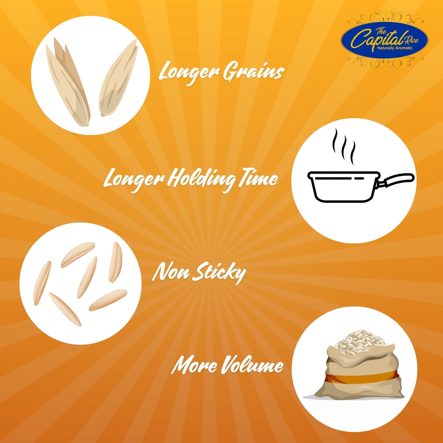 Elevate Your Culinary Creations With Our Premium Quality Aged Basmati Rice. This Long-grain Rice Has Been Carefully Aged to Enhance Its Flavour and Fragrance, Making It the Perfect Ingredient for Discerning Cooks. Whether You’re Making a Classic Dish or Trying Something New, Aged Basmati Rice Will Bring a Touch of Sophistication to Your Meals. 1121 Basmati Rice is Known Worldwide for Its Long Length, Excellent Cooking Qualities, Unique Aroma, Special Sweet Taste and High Nutritional Value. Capital Classic Has Been Aged for Upto 2 Years to Bring You the Authentic Basmati Experience.