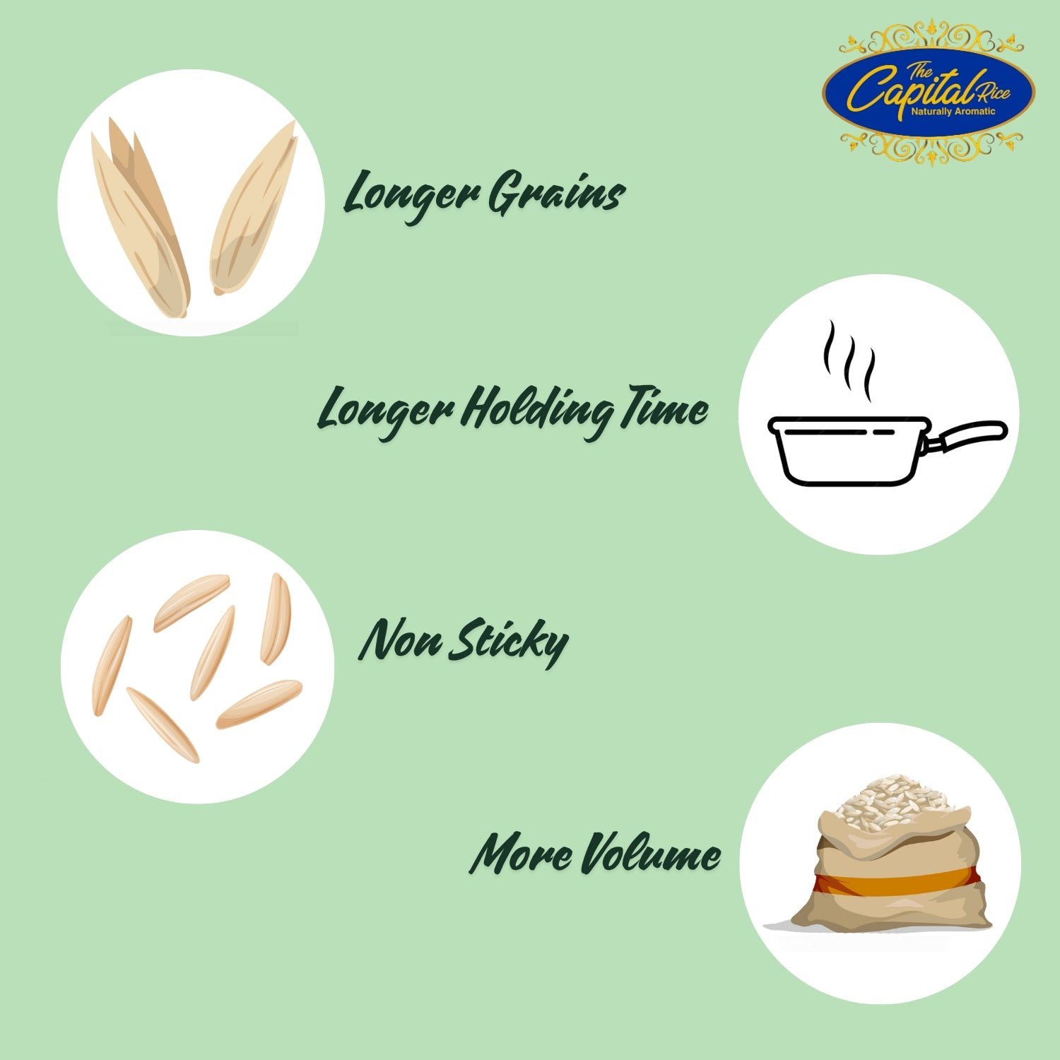 Elevate Your Culinary Creations With Our Premium Quality Aged Basmati Rice. This Long-grain Rice Has Been Carefully Aged to Enhance Its Flavour and Fragrance, Making It the Perfect Ingredient for Discerning Cooks. Whether You’re Making a Classic Dish or Trying Something New, Aged Basmati Rice Will Bring a Touch of Sophistication to Your Meals. 1121 Basmati Rice is Known Worldwide for Its Long Length, Excellent Cooking Qualities, Unique Aroma, Special Sweet Taste and High Nutritional Value. Capital Classic Has Been Aged for Upto 2 Years to Bring You the Authentic Basmati Experience.